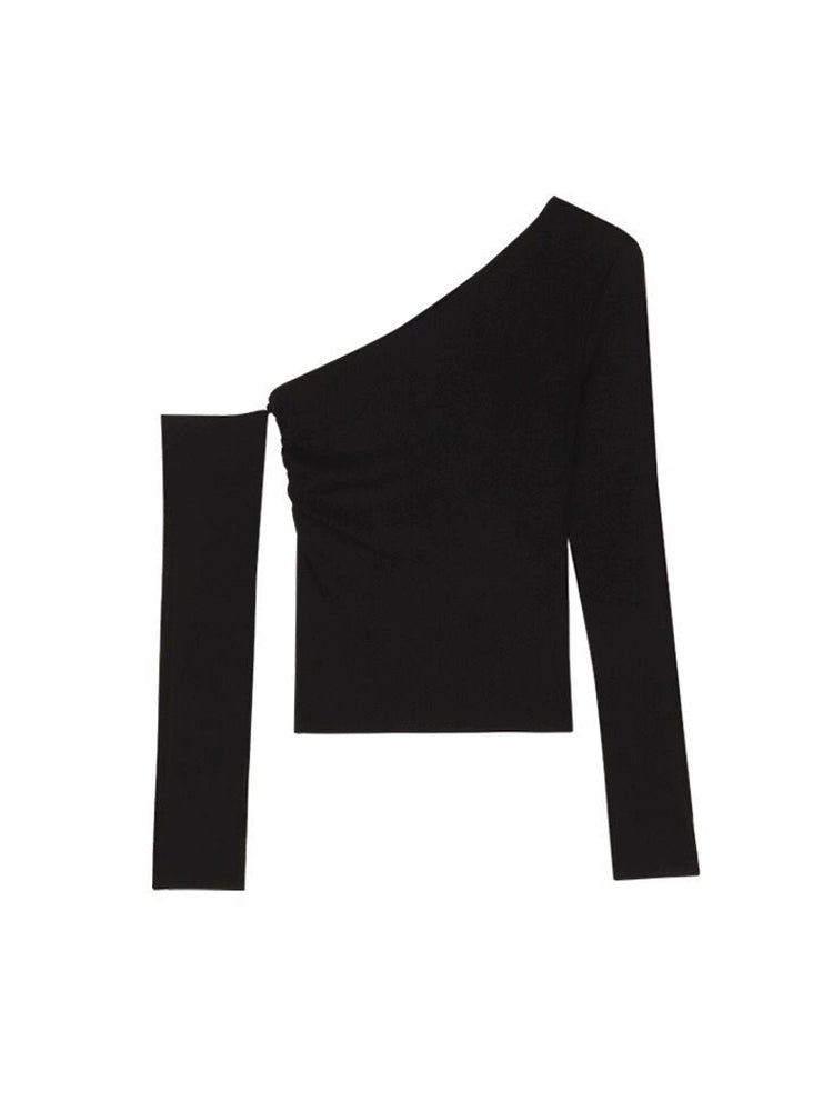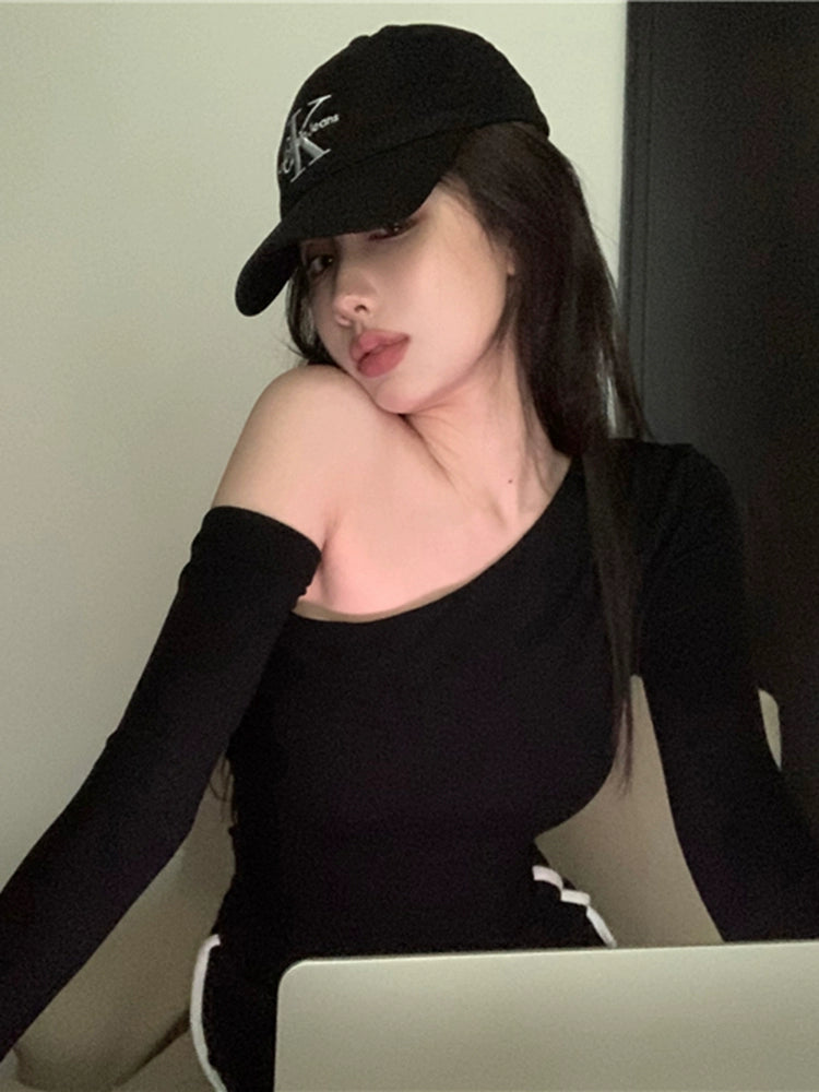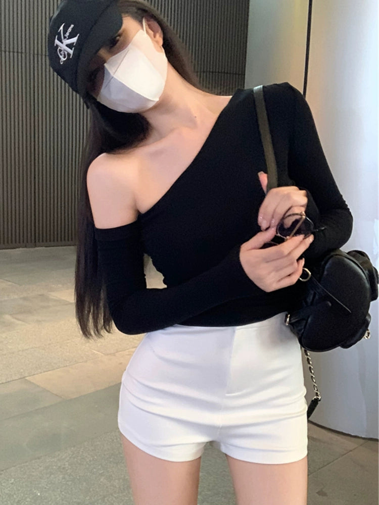 Strapless Diagonal Collar Early Autumn Stylish Slim Fit Long-Sleeved shirt